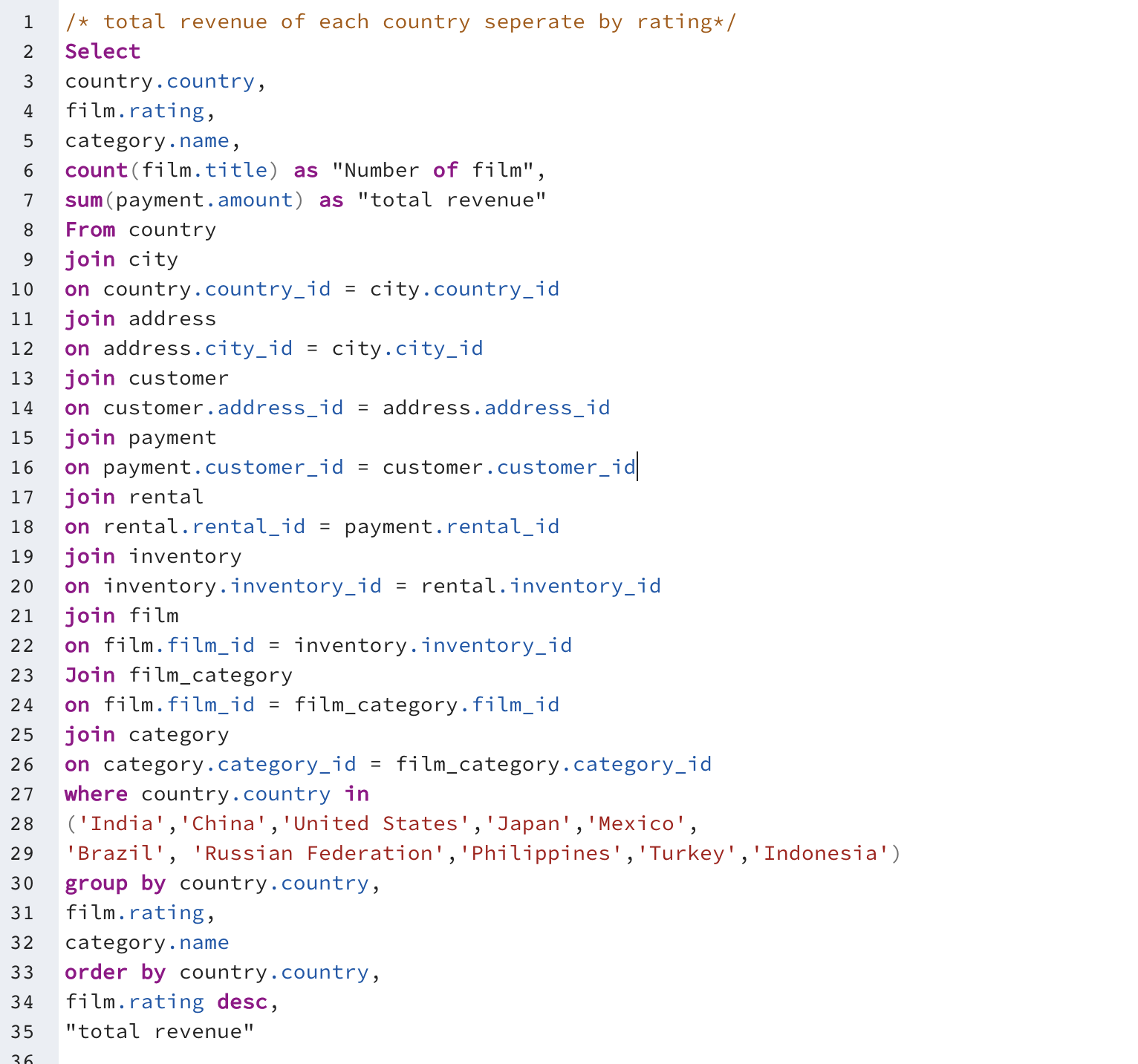 So far, we know PG-13 is one of the types of movie ratings that brings the most revenue to the company. When I look at the company inventory, I notice the company has a total of 223 PG-13 movies which accounted for 22% of total revenue. To bring more revenue to the company, we need to devise a plan such as stocking more interesting PG-13 movies.
