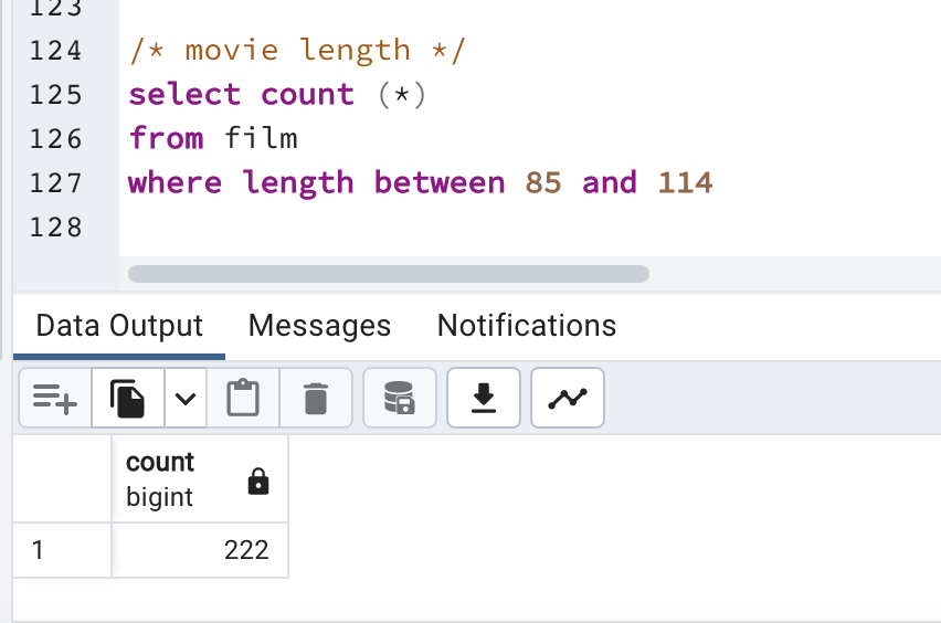 Let me count how many movies have around 85 - 114 minutes lengths.